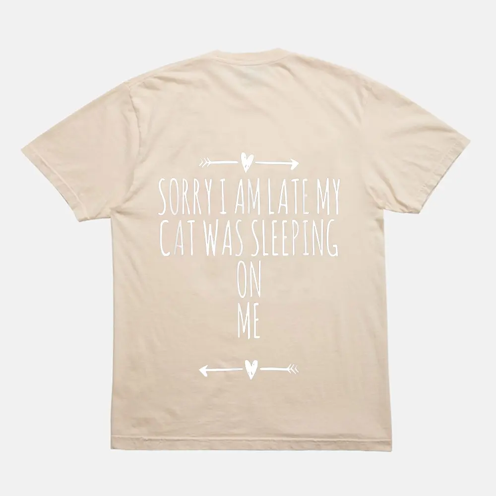 Arrows Heart Cute Sorry I Am Late My Cat Was Sleeping On Me T-Shirt – Cream