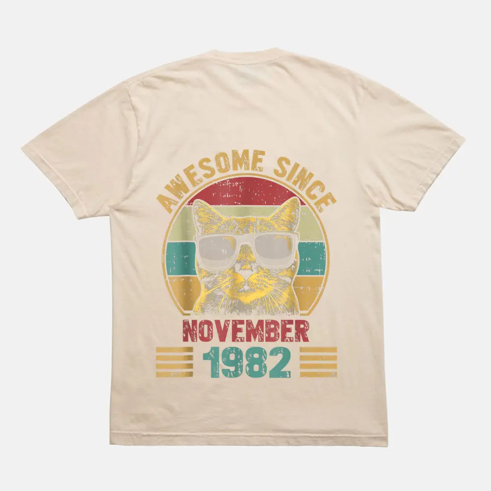 Awesome Since November 1982 40 Years Old Gifts Cat Lovers T-Shirt – Cream