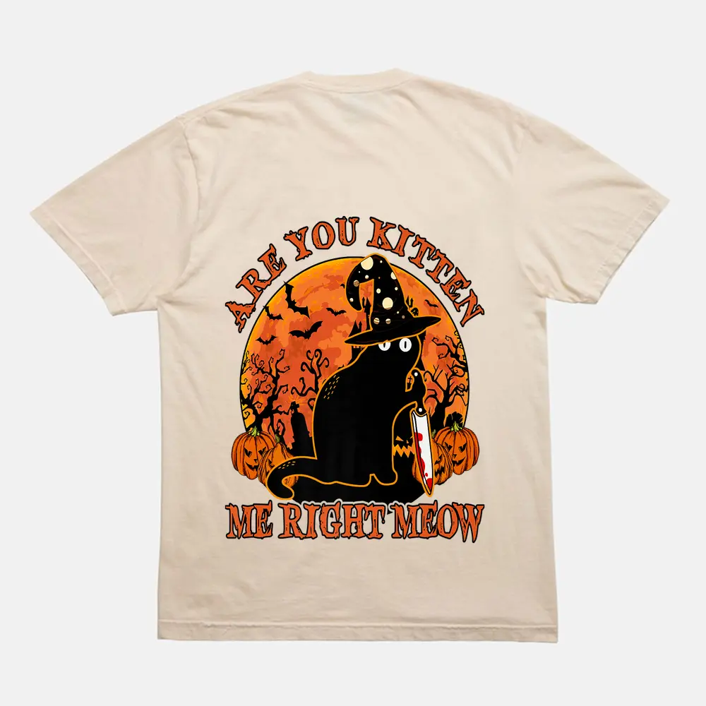 Black Cat Halloween- Are You Kitten Me Right Meow Lover T-Shirt – Cream