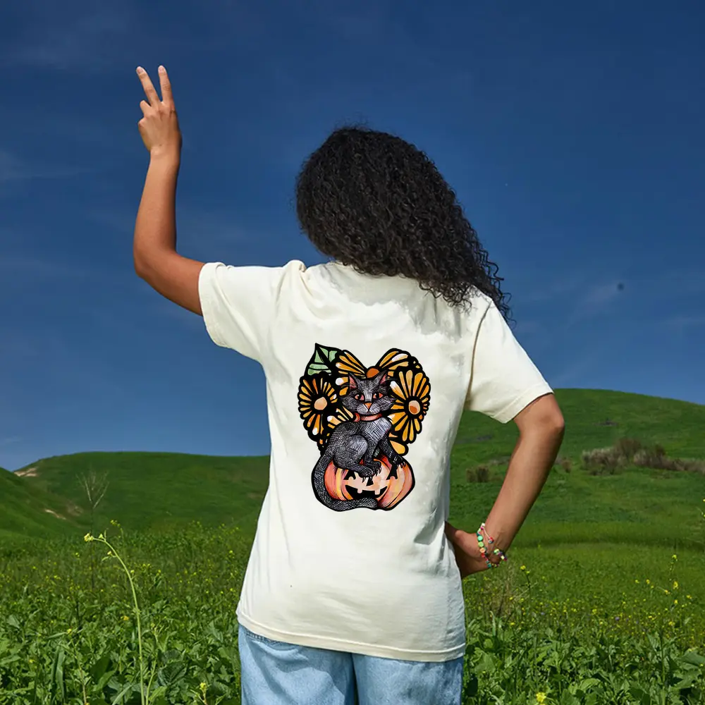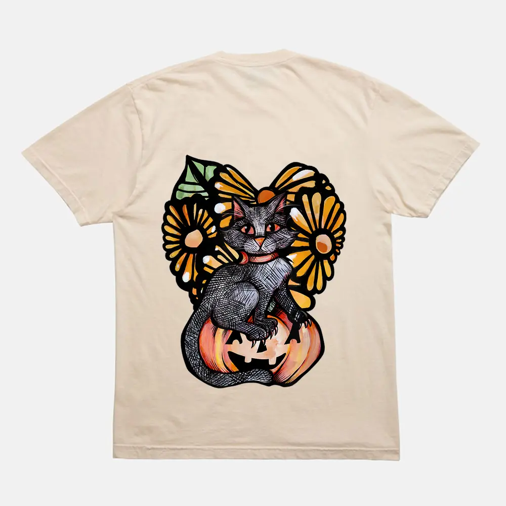 Black Cat Pumpkin Jack O Lantern Daisy T-Shirt – Cream