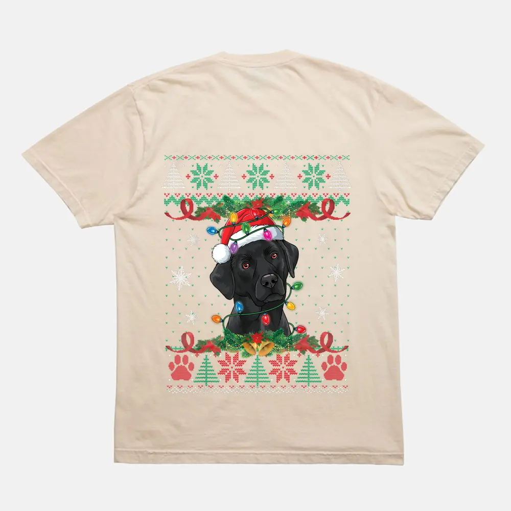 Black Lab Christmas Santa Ugly Dog Lover Xmas T-Shirt – Cream