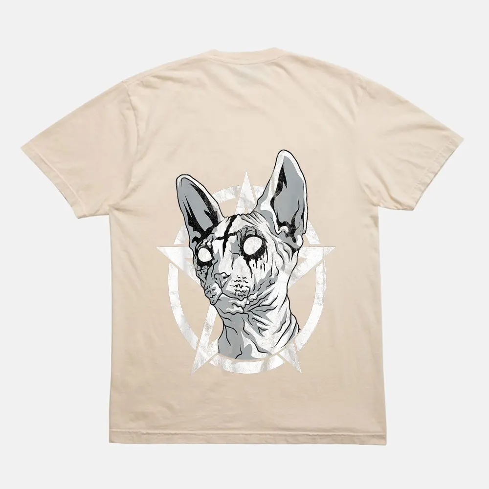 Black Metal Sphynx Cat Goth And Death Metal Sphinx Occult T-Shirt – Cream