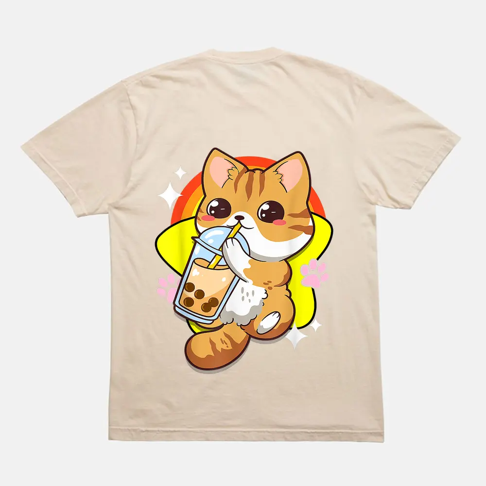 Boba Tea Bubble Tea Cat Anime Kawaii Neko Lover Japanese T-Shirt – Cream