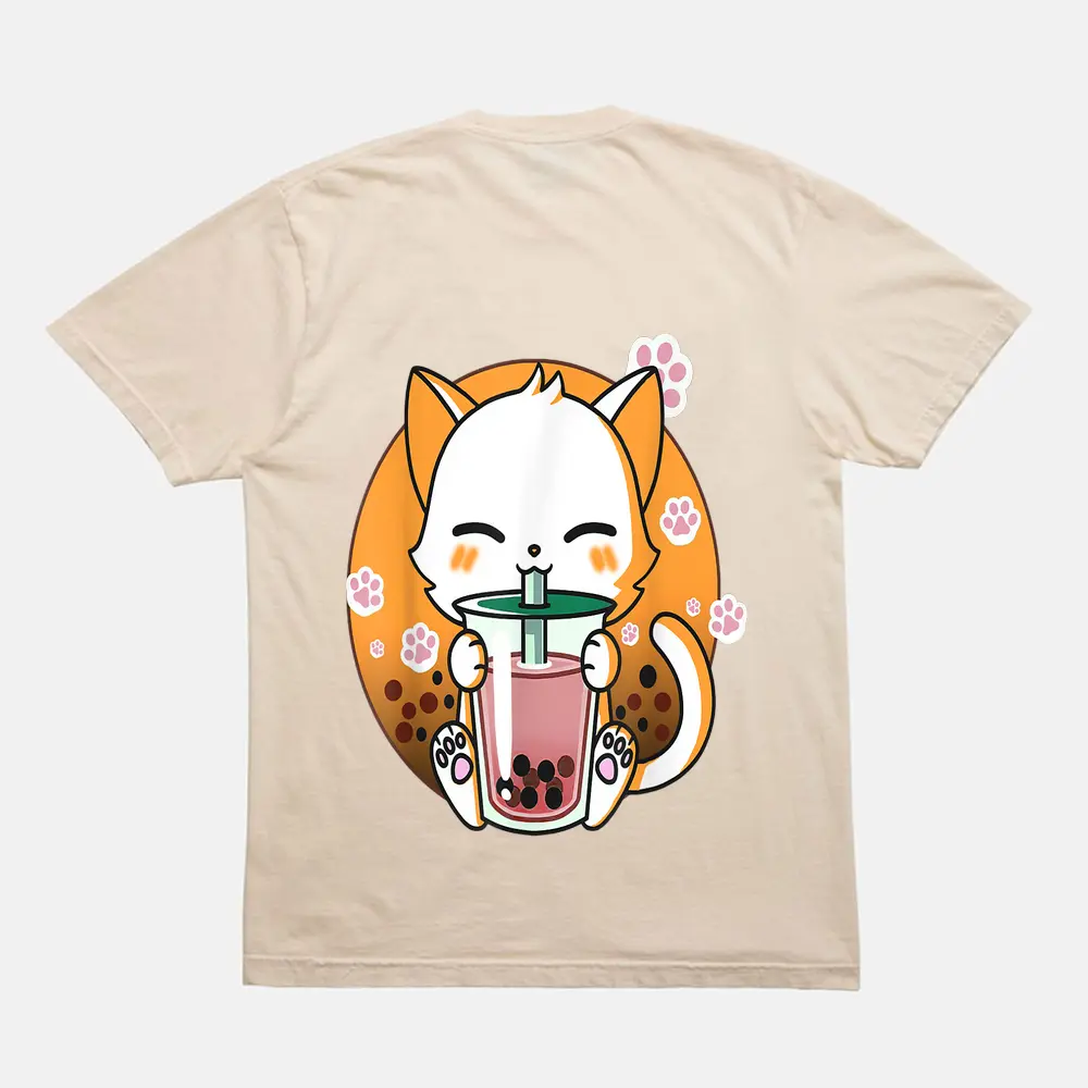 Boba Tea Cat Bubble Tea Kawaii Anime Japanese Gift Girl Teen T-Shirt – Cream