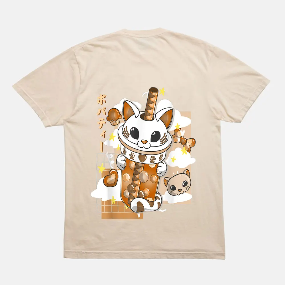 Boba Tea Cute Cat Bubble Tea Kawaii Anime Japanese Girl Teen T-Shirt – Cream