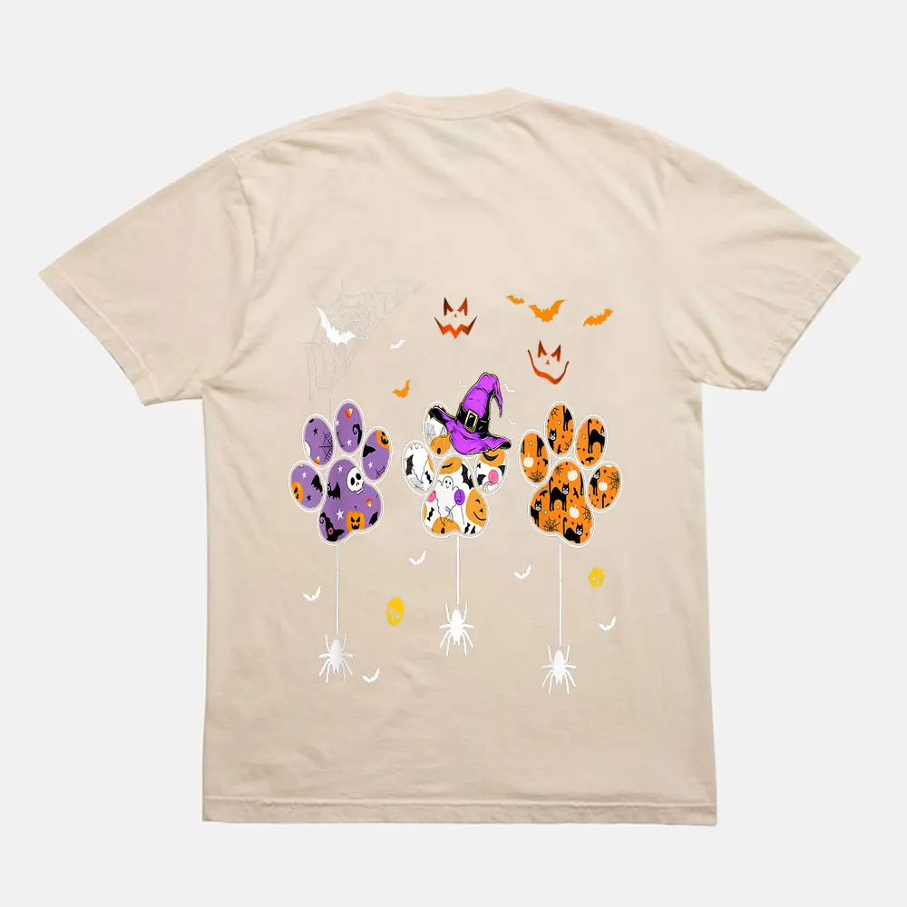 Boo Paw Print Dog Paw Spiders Halloween T-Shirt – Cream