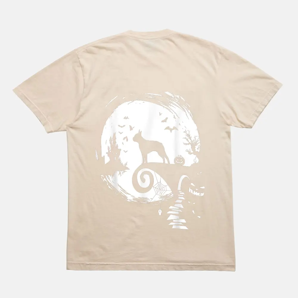 Boston Terrier And Moon Halloween Costume Dog Lover Funny T-Shirt – Cream