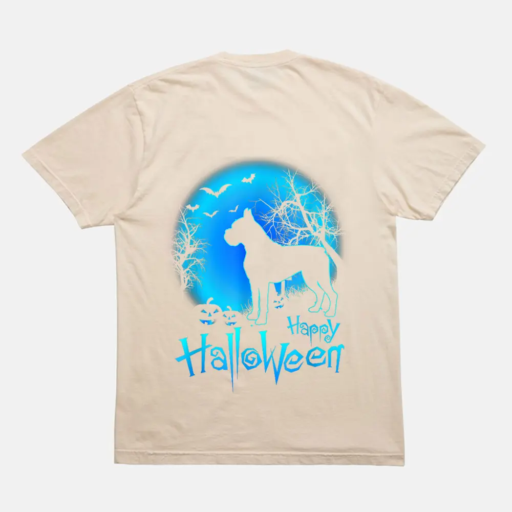 Boxer Dog In The Moon Halloween T-Shirt – Cream