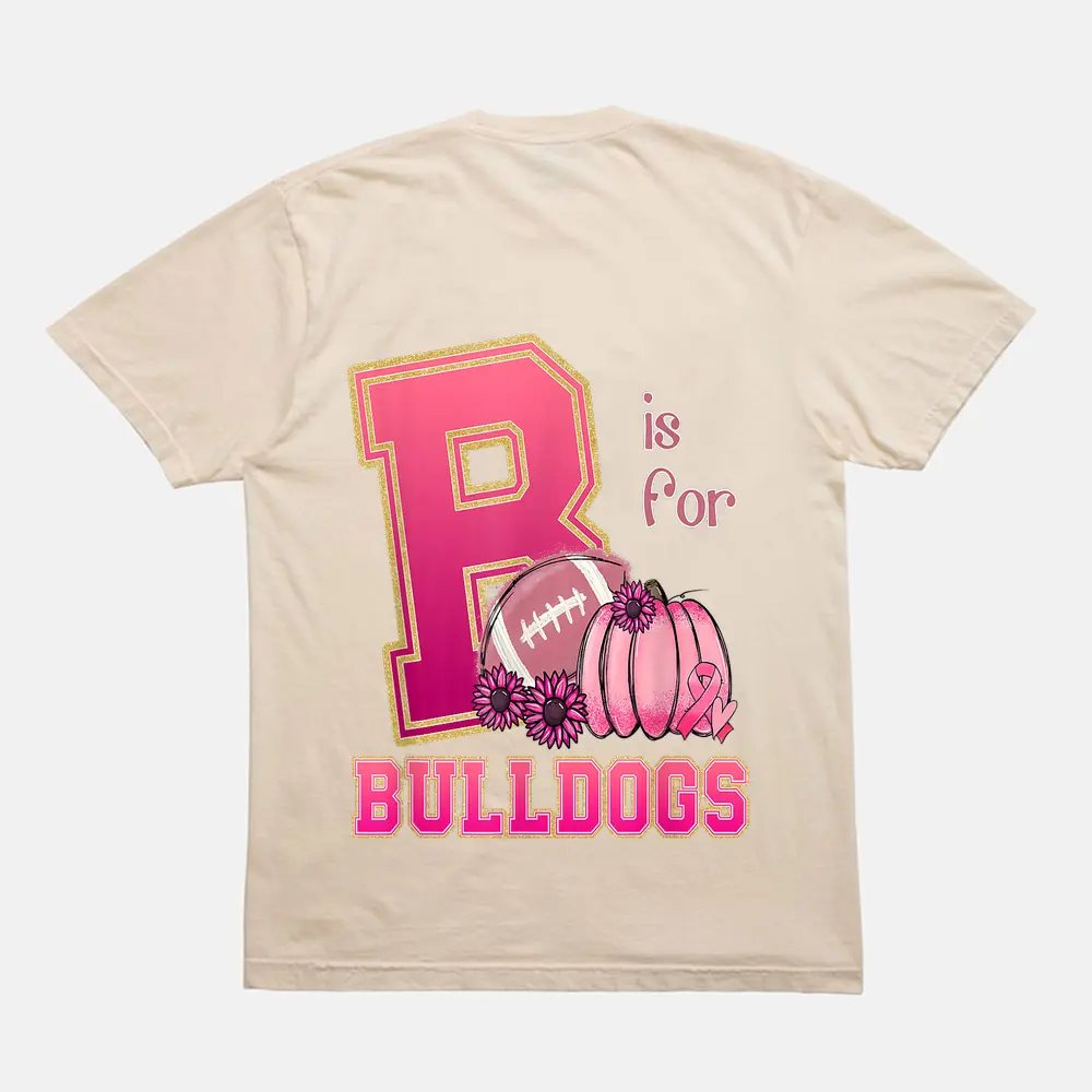 Bulldog Breast Cancer Awareness Football Fall School Spirit T-Shirt – Cream