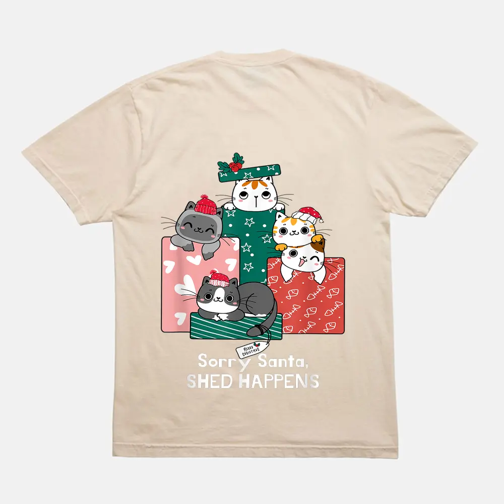 CAT Christmas Sorry Santa Shed-Happens T-Shirt – Cream