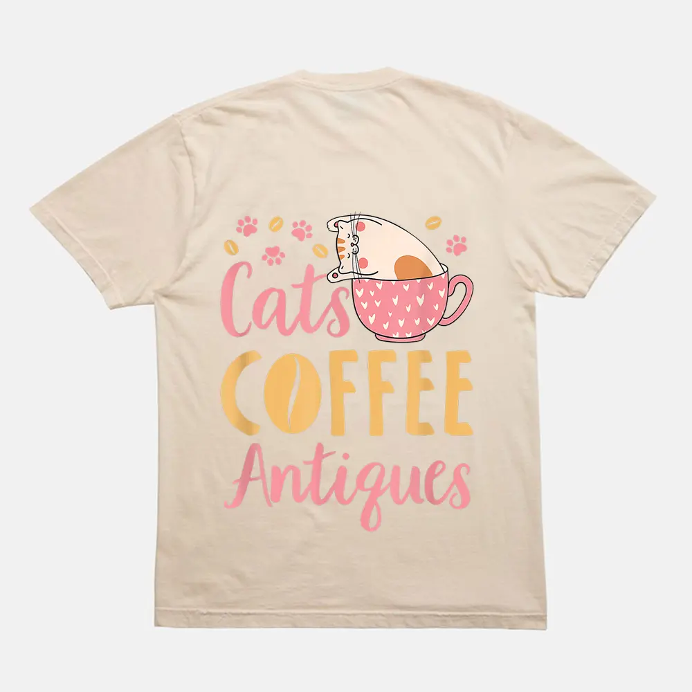 Cats Coffee Antiques Cat Lover Antiquing T-Shirt – Cream