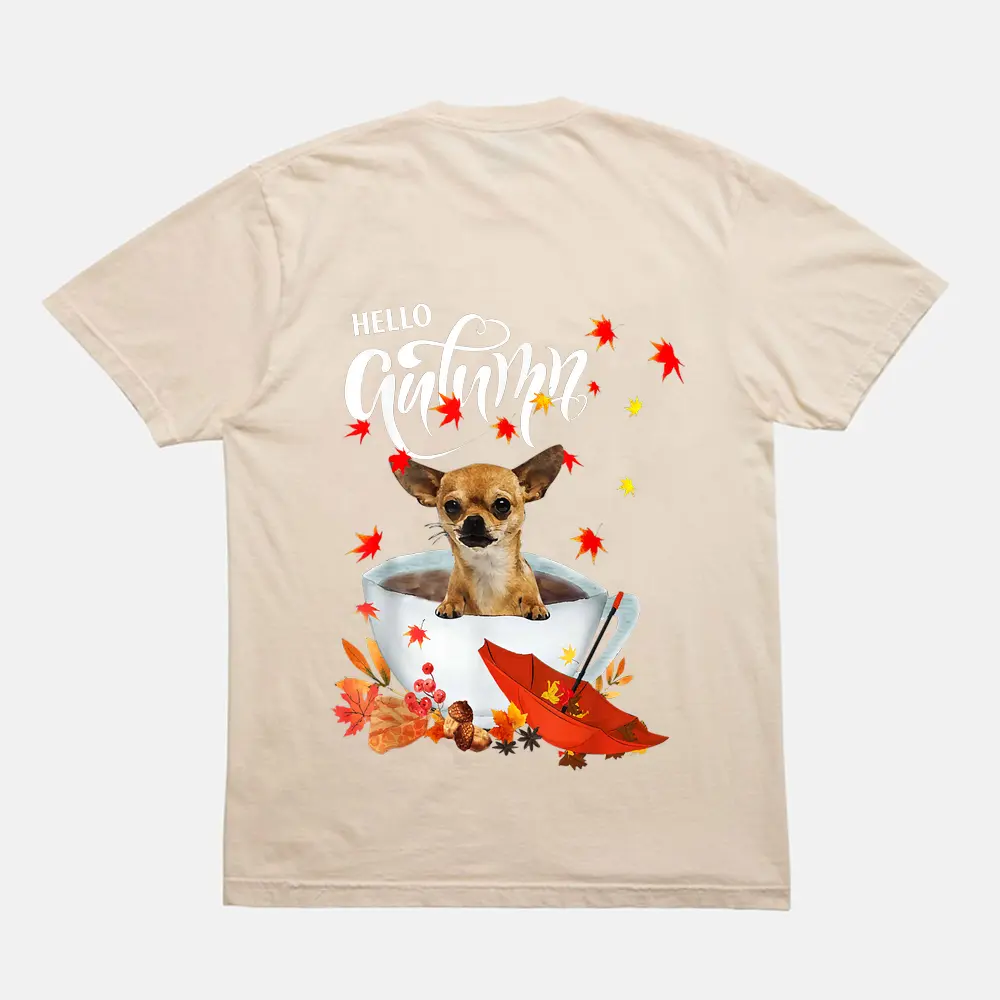 Chihuahua Autumn Dog And Coffee Fall Thanksgiving Chihuahua T-Shirt – Cream