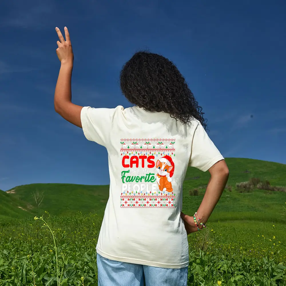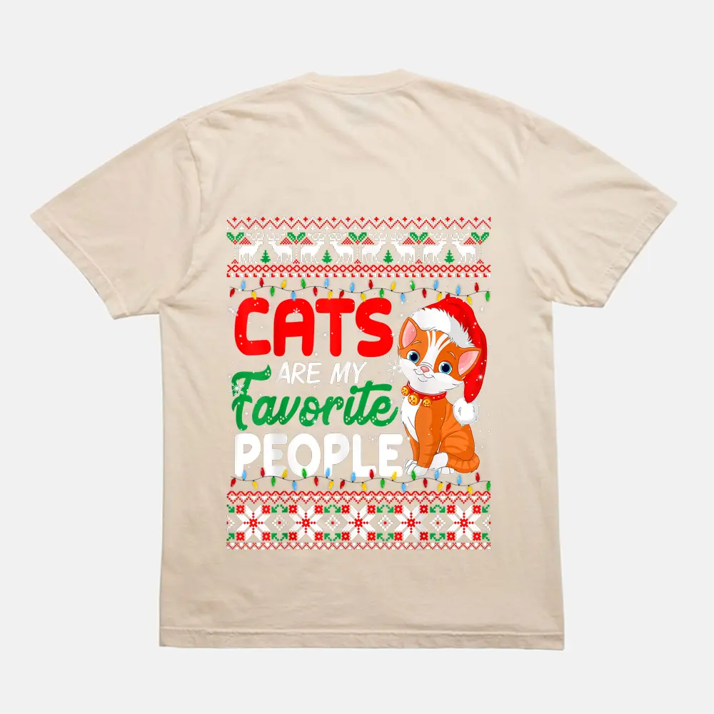 Christmas Cat – Cats Are My Favorite People T-Shirt – Cream