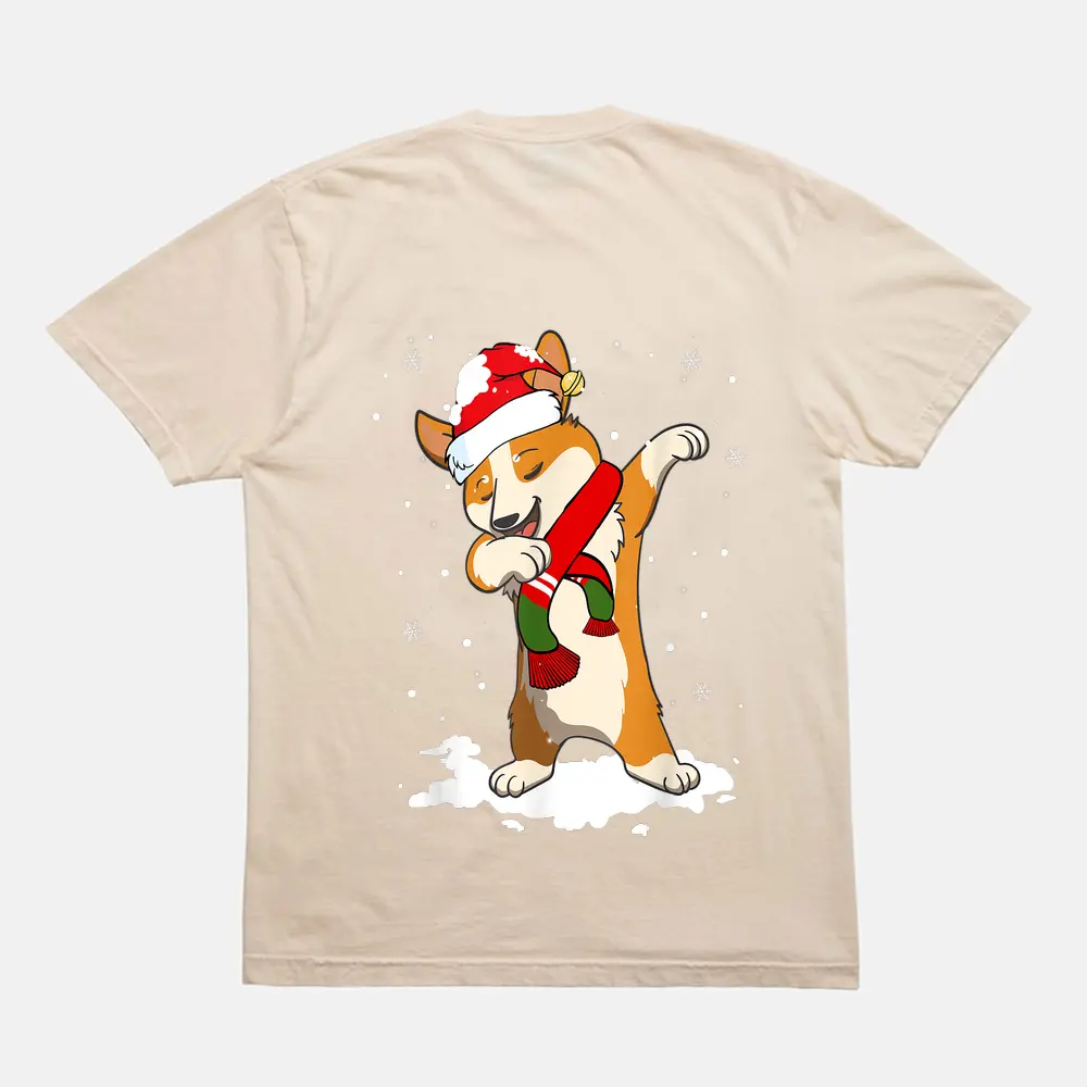 Christmas Dabbing Corgi Santa Hat For Boys Men Dog Lover T-Shirt – Cream
