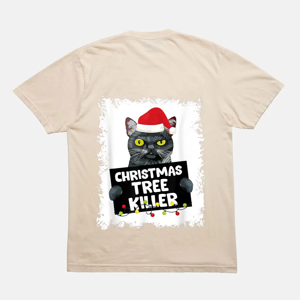 Christmas Tree Killer Naughty Black Cat Christmas T-Shirt – Cream
