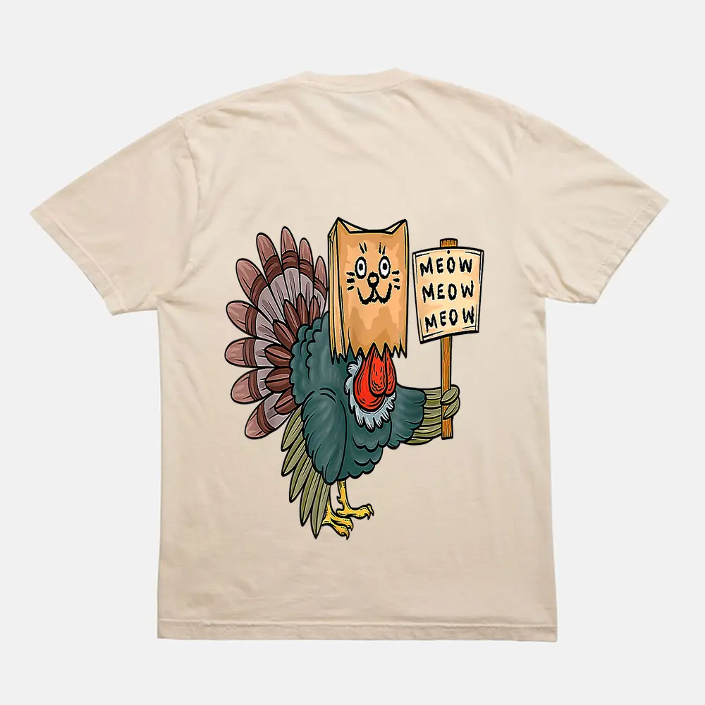 Cool Turkey Fake Cat Funny Thanksgiving Boys Girls Kids Gift T-Shirt – Cream