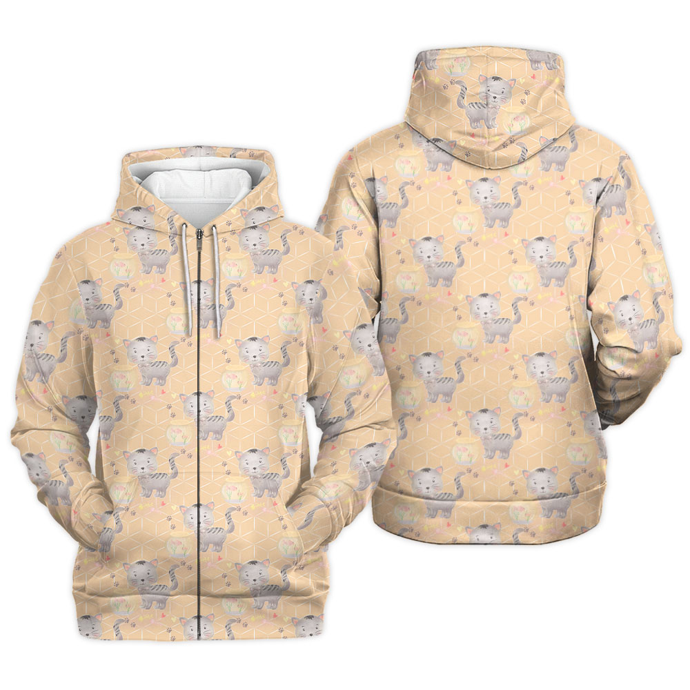 • Hoodie with full body front zipper closure, two frontside hip’s pockets.