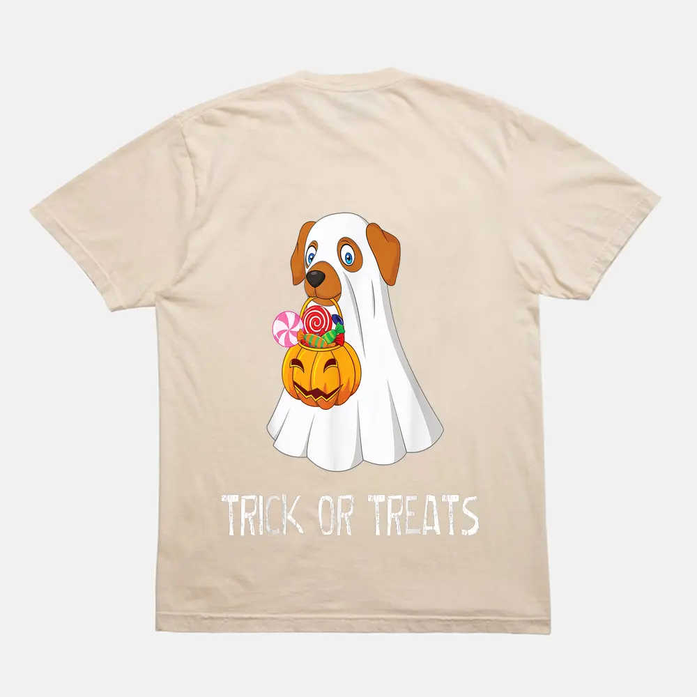 Trick Or Treats Funny Ghost Dog Cute Halloween Ns Girls T-Shirt – Cream