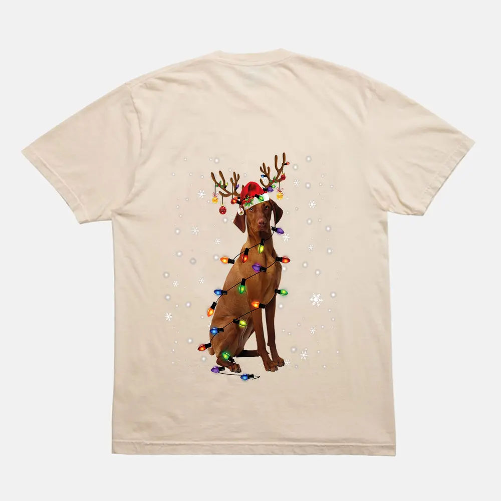 Vizsla Christmas Reindeer Santa Hat Pajama Dog Lover Funny T-Shirt – Cream