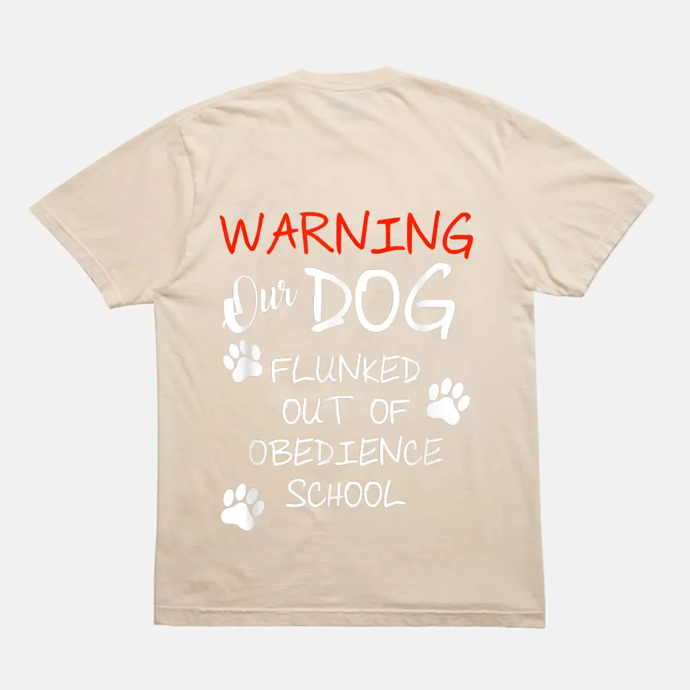 Warning Our Dog Flunked Out Of Obedience School Apparel T-Shirt – Cream
