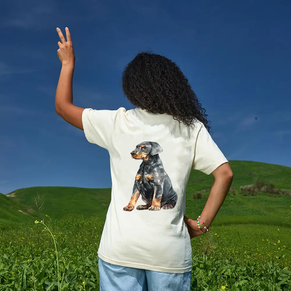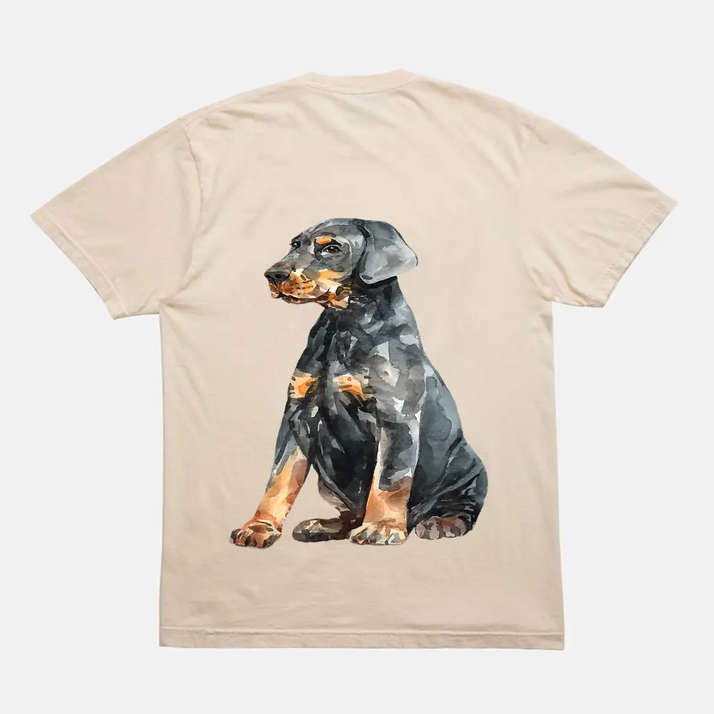 Watercolor Portrait Doberman Pinscher Puppy For Dog Owners Ver 2 T-Shirt – Cream