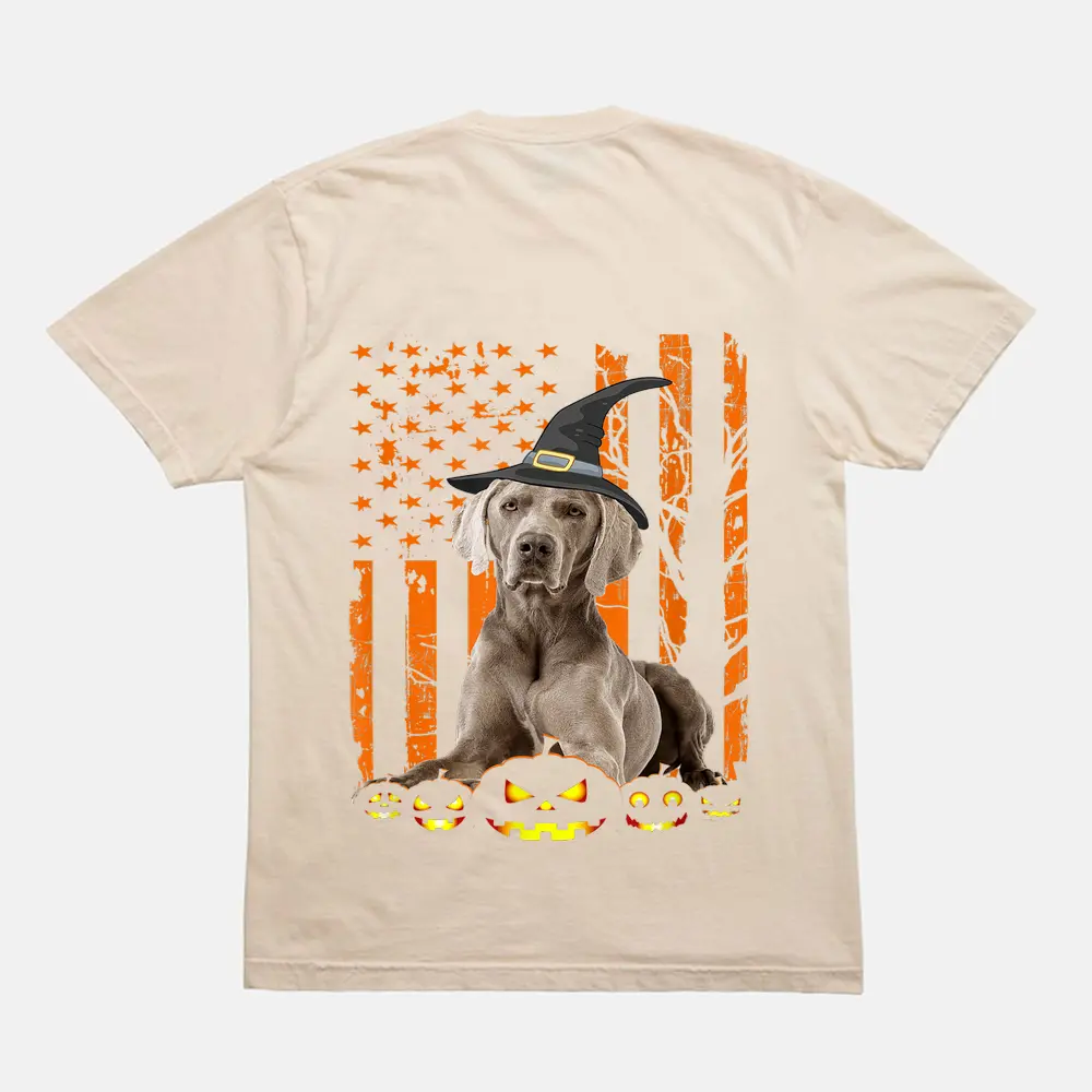 Weimaraner Dog Pumpkin American Flag Vintage Halloween Gifts T-Shirt – Cream