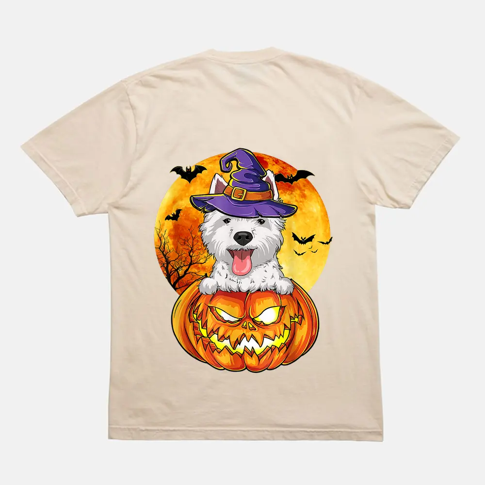 Westie Witch Pumpkin Halloween Dog Lover Funny T-Shirt – Cream