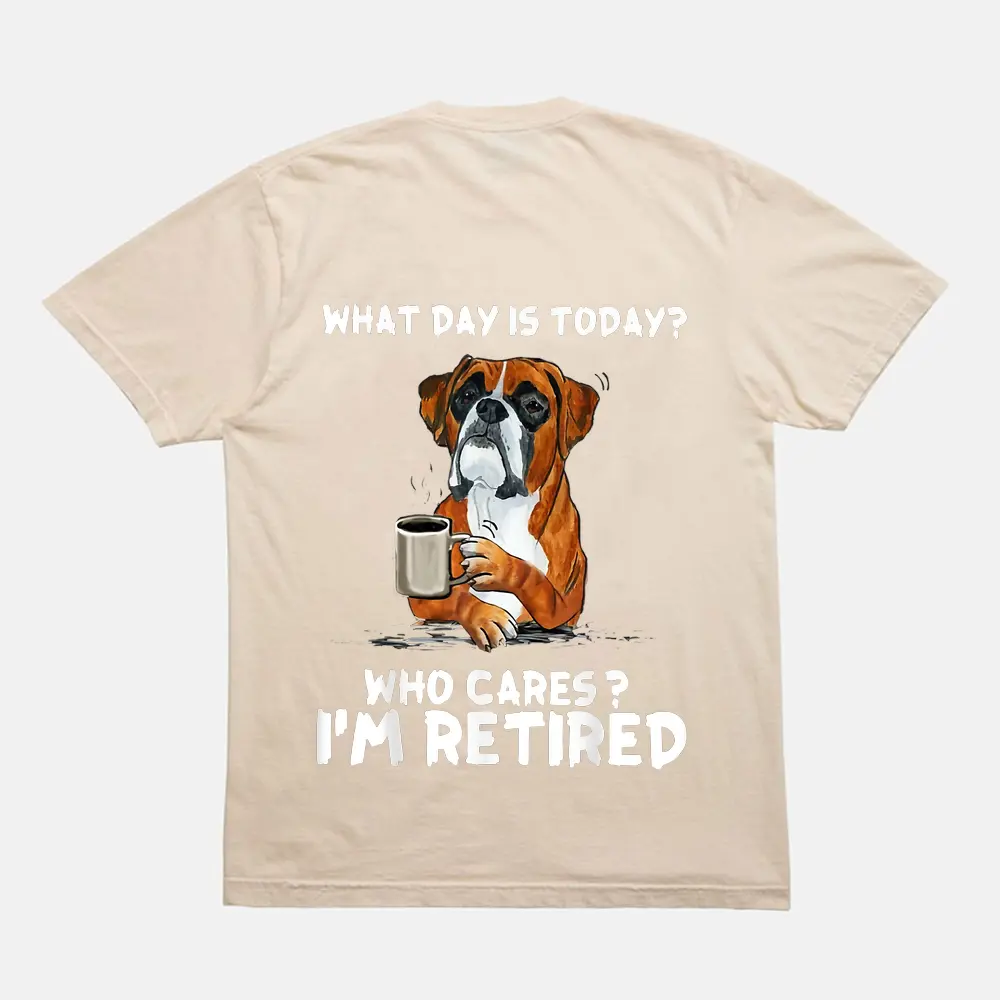 What Day Is Today Who Care I’m Retired Funny Boxer Dog T-Shirt – Cream