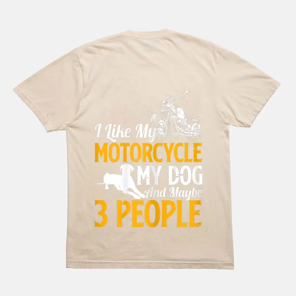 Womens Funny Biker I Like My Motorcycle My Dog And Maybe 3 People T-Shirt – Cream
