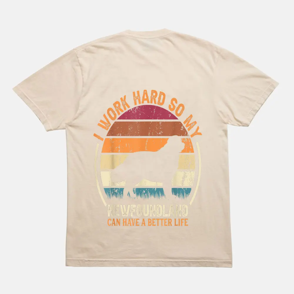 Work Hard So Dog Have Life – Funny Retro Newfoundland T-Shirt – Cream